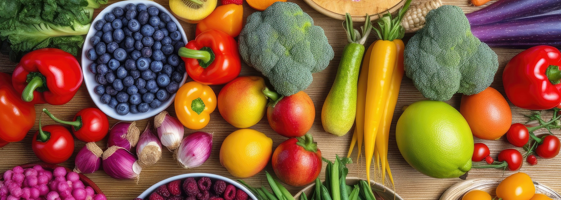 • Choose vegetables and fruits in a range of colours. Examples include purple sprouting broccoli, red onions, red cabbage, purple carrots and blueberries. These are particularly rich in anthocyanins.