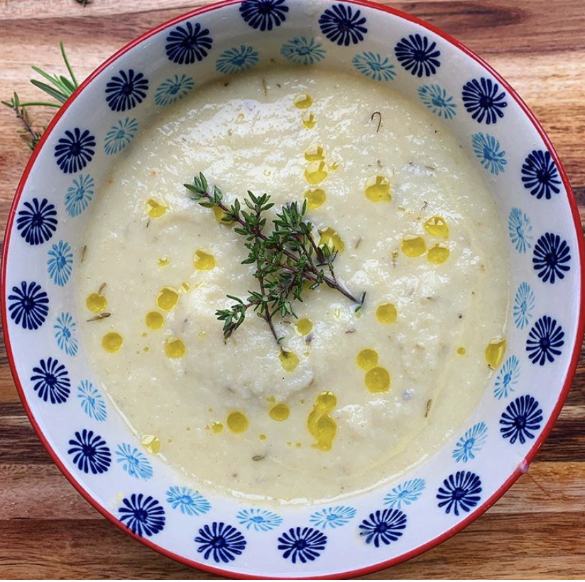 This soup is really filling and great for a cold autumn day. This recipe combination tastes really indulgent and a combination of the Dijon mustard and the cauliflower give it a cheese–like flavour. The fresh thyme really gives it an edge.