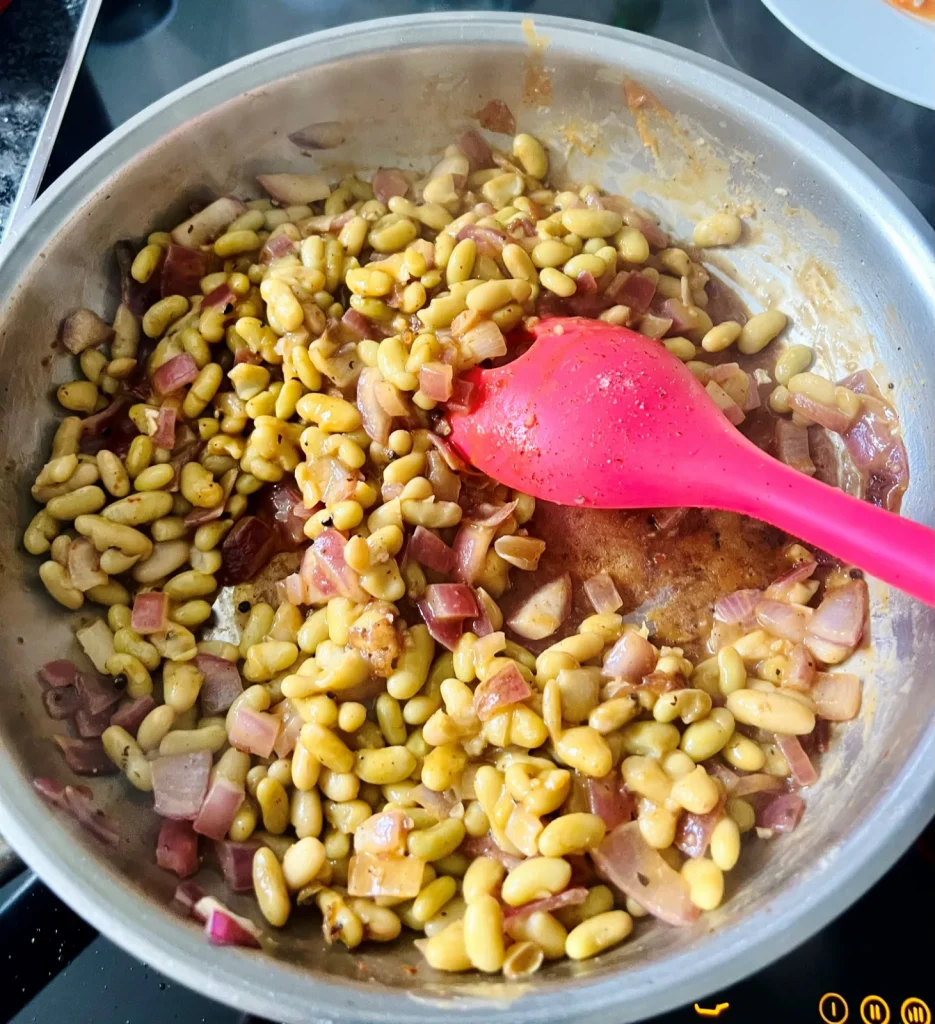I was inspired by this recipe by chance while I was wearing a blood sugar monitor and discovered that beans have an incredibly balancing effect on blood sugars for myself and many people. I also love this recipe because it is super satisfying AND is a great plant based, mid week meal. Not only that, it is also bursting with fibre.