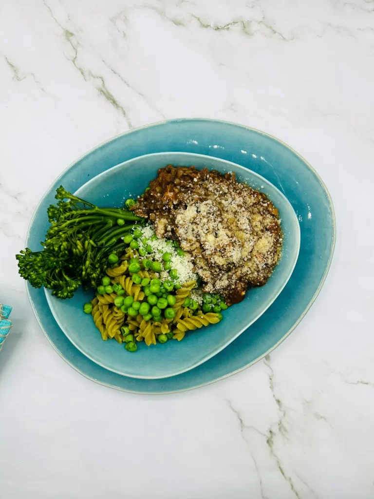 This is a meat-free meal and has some great umami flavours which mean that you don’t even miss the meat. It is also surprisingly filling. You can of course keep it plant-based, but I like to top up the lentil protein with 20g grated Parmesan cheese per portion, but it’s your dish, so do as you wish.